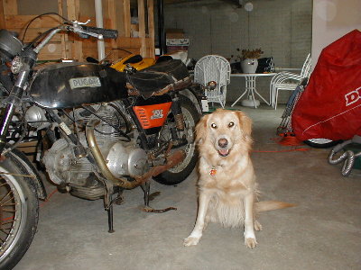 Desmo (the dog) is entirely unimpressed with the bike. I'm sure he's thinking "Do I look like a Springer to you?" (Sorry, a little Ducati humor there) At least he didn't lift his leg when he walked by... |
