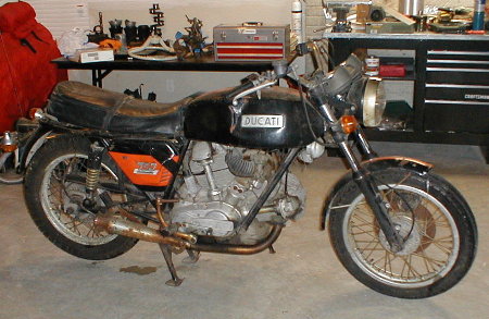 Desmo a few moments later, looking much happier. Hey... what's that wet spot in front of the rear wheel?